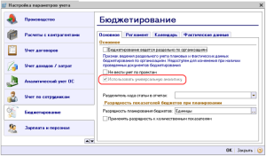 Для использования дополнительных разрезов аналитики необходимо включить механизм универсальной аналитики в параметрах учета.