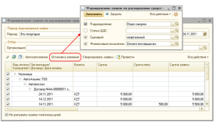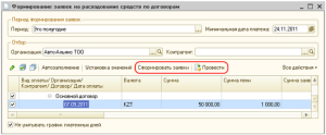 После ввода всех необходимых данных в обработку, можно сформировать документы «Заявка на расходование денежных средств», нажав кнопку «Сформировать заявки». Предусмотрена возможность группового проведения всех сформированных заявок.