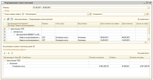 В табличной части «Состояние денежных средств» обработки отображается остаток денежных средств на счете или в кассе, за счет которых будет производиться оплата.
