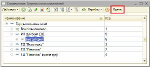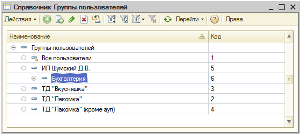 Открывается окно со списком созданных групп пользователей (из справочника Группы пользователей).