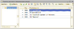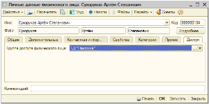 Для того, чтобы указать, к какой группе доступа из данного справочника относится физическое лицо, необходимо в форме элемента справочника Физические лица на закладке «Доступ» указать элемент из данного справочника.