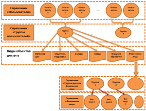 В данный момент в прикладном решении предусмотрена возможность настроить доступ к данным в разрезе следующих справочников: