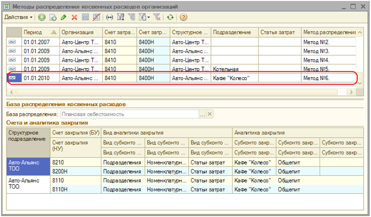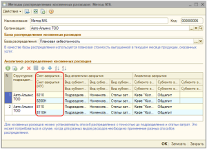 Затем, в регистре сведений «Методы распределения косвенных расходов» необходимо создать новую строку с указанием ранее созданного метода распределения.