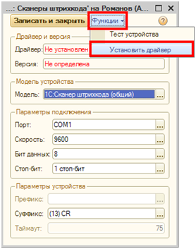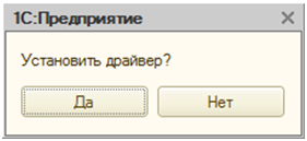 При согласии пользователя автоматически будет установлен драйвер устройства. При отказе от установки драйвера устройства будет открыта форма настройки оборудования, при этом, статус драйвера будет — «Не установлен». Процедуру установки драйвера можно запустить из формы настройки, воспользовавшись пунктом «Установить драйвер» меню «Функция».