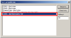 Для проверки работоспособности сканера штрих-кода необходимо считать штрих-код товара с помощью сканера штрих-кодов. Если параметры устройства настроены правильно, появится строчка с номером прочитанного штрих-кода, соответственно тест устройства пройден успешно.