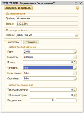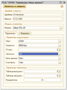 У терминала сбора данных свой список обработчиков драйверов, отличный от сканера штрих-кодов, настройки параметров устройства тоже будут несколько отличаться.