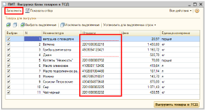 После заполнения сведений о штрих-кодах можно выгрузить данные о товарах в терминал сбора данных с помощью кнопки «Выгрузить товары в ТДС».