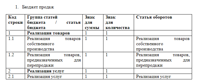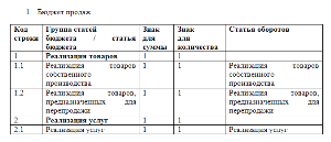 Рассмотрим построение структуры бюджета на примере формирования следующих бюджетов: бюджет продаж, бюджет административных затрат и бюджет доходов и расходов. Для каждого вида бюджета определим набор статей, в разрезе которых будет вестись планирование.