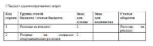 Следует обратить внимание, что бюджет административных затрат и бюджет доходов и расходов в своей структуре содержат статью бюджета «Расходы на рекламу» с общей одноименной статьей оборотов. Это сделано для того, чтобы вводить плановое значение по данной статье оборотов только в одном бюджете (бюджет административных затрат), а во втором (бюджет доходов и расходов) – только отображать уже введенное в других бюджетах значение.