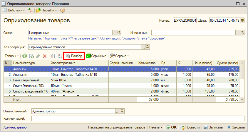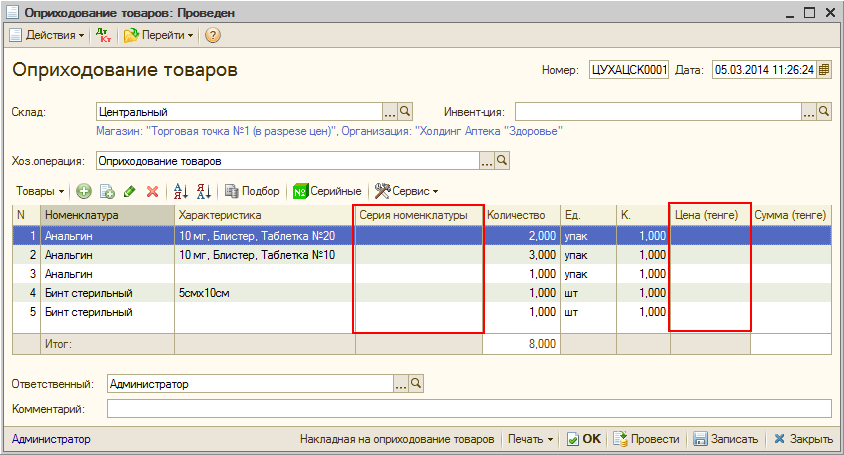 Таким образом, мы рассмотрели как ввести начальные остатки и определить ценовую политику в прикладном решении «1С:Аптека для Казахстана». В следующей статье речь пойдет об управлении маркетинговыми акциями в прикладном решении «1С:Аптека для Казахстана».