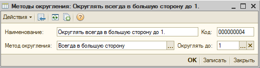 В появившейся форме необходимо указать метод округления и порядок округления. Метод округления может принимать два значения: по арифметическим правилам и всегда в большую сторону.