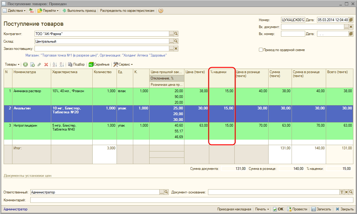 В ранее опубликованной статье «Порядок настройки и первоначального заполнения информационной базы в прикладом решении «1С:Аптека для Казахстана» мы рассмотрели каким образом производится заполнение информационной базы перед началом ведения учета. В рамках данной статьи мы рассмотрим как ввести начальные остатки по денежным средствам и номенклатуре на складе и познакомимся с механизмами ценообразования, применяемыми в аптеке.