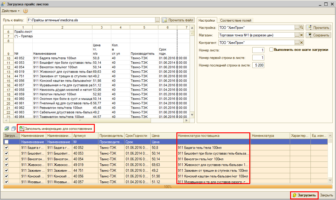 Загрузка прайс-листов поставщиков