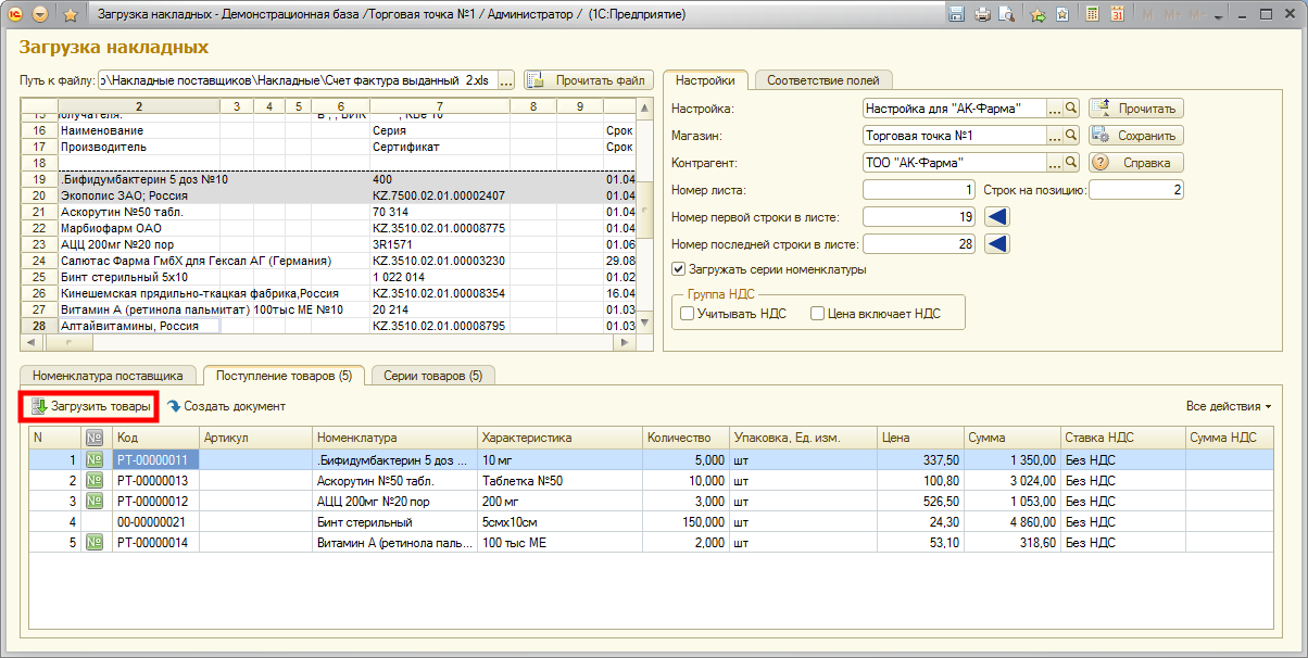 Возможности загрузки электронных накладных от поставщиков в «1С:Аптека для Казахстана»