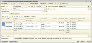 Созданный на основании документ «Расчет зарплаты работникам организаций» выглядит следующим образом: