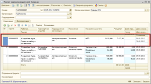 Перезаполним и выполним перерасчет ранее введенного документа «Расчет зарплаты водителей»: