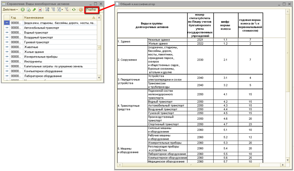 Дополнительные характеристики (настройки) внеоборотных активов, предназначенные для выгрузки, хранятся в регистре сведений Настройки ЕССО.