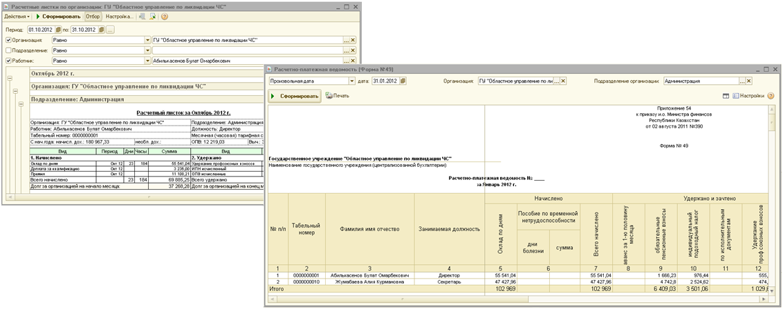 Учитывая потребность в централизации учета, в конфигурации «Госсектор: Бухгалтерия государственного учреждения для Казахстана» предусмотрено ведение учета нескольких государственных учреждений в единой информационной базе (в том числе для автоматизации централизованных бухгалтерий) с получением как общих, так и раздельных (по учреждениям) главных книг и балансов.