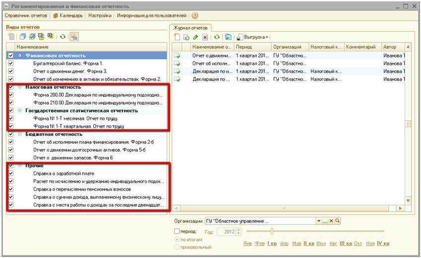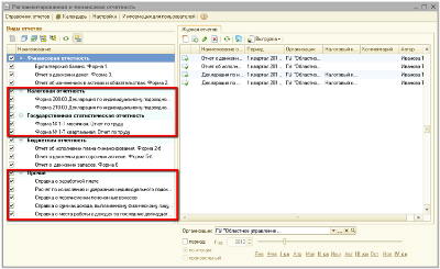 Регламентированные отчеты предназначены для представления вышестоящим и контролирующим государственным органам. Отчеты, для которых такая возможность предусмотрена нормативными документами, могут быть выгружены в электронном виде.