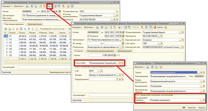 - Регистрация и учет исполнения планов финансирования. Учет плановых назначений на принятие обязательств и движение денежных средств