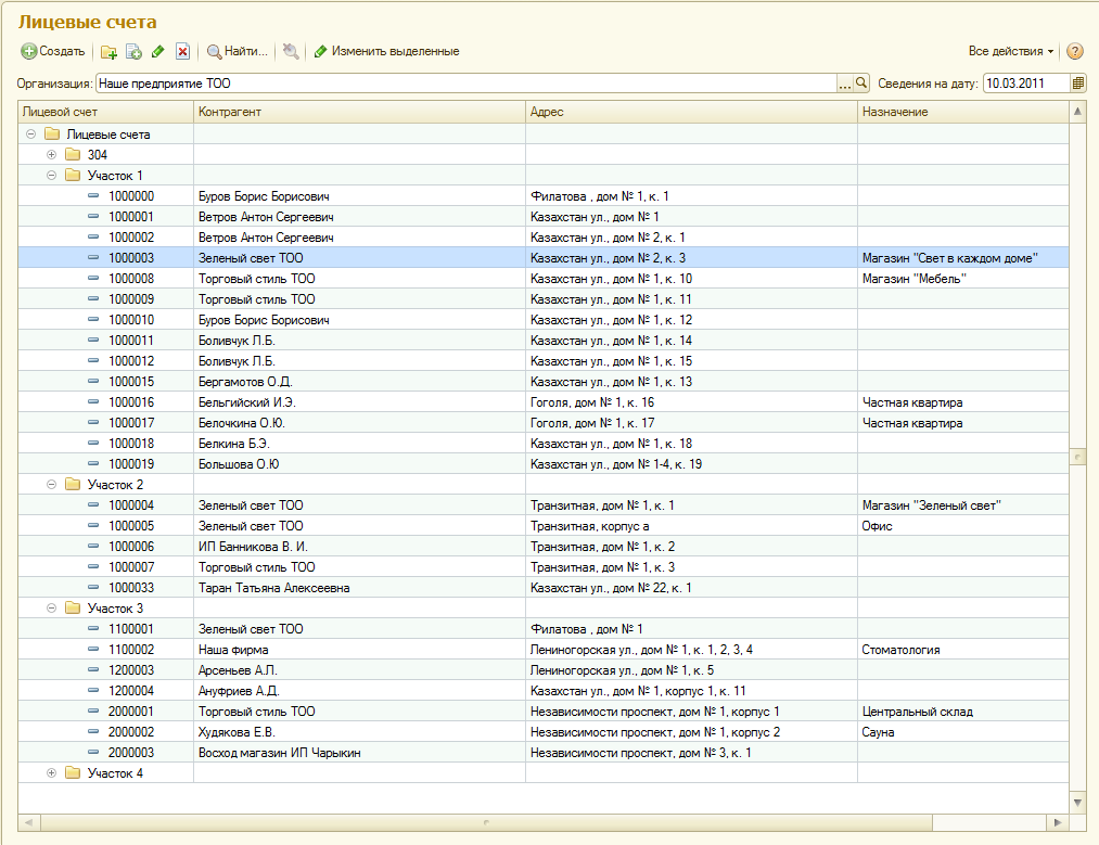 Список лицевых счетов регистрируется для каждой организации, таким образом, в одной базе можно вести учет лицевых счетов по каждой организации отдельно.