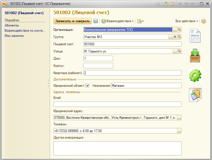 - Ведение картотеки лицевых счетов абонентов с указанием полного адреса объекта и дополнительной контактной информации.