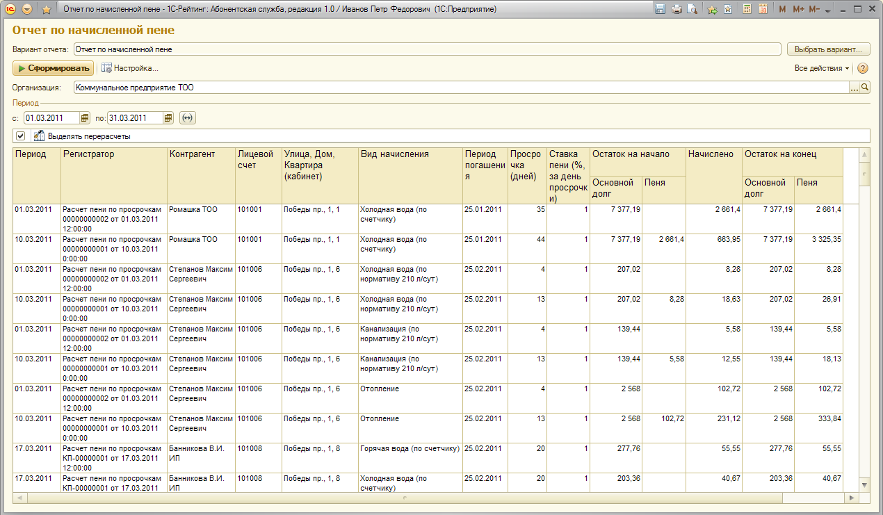 Для анализа начисленной пени используется «Отчет по начисленной пене».