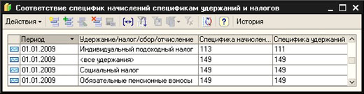 В том случае, когда начисления производятся по одной статье классификации, а удержания, налоги, сборы и отчисления с данной суммы начислений следует отражать по другой статье, существует возможность настройки соответствий специфик удержаний спецификам начислений, с суммы которых данные удержания исчисляются.
