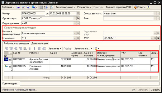Регистрация хозяйственных операций бухгалтерского учета в разрезе бюджетных статей классификации расходов не сказывается на привычной пользователю работе с большинством бухгалтерских документов. Классификация расходов назначается аналитике бухгалтерских операций, и определяется в момент проведения, без участия пользователя. Таким образом, пользователю нет необходимости запоминать корректные классификации для бухгалтерских операций.