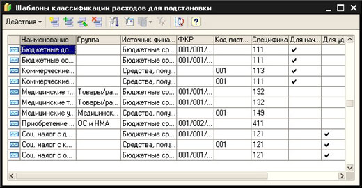 В системе поддерживается механизм шаблонов для хранения готовых наборов статей классификации, доступных для подстановки в различных справочниках и документах. Данный механизм позволяет облегчить ввод часто используемых статей классификации расходов, а также подсказать пользователю корректные статьи.