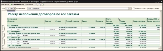 Далее, при поступлении товаров, услуг и работ по данным договорам, а также при проведении расчетов по ним, происходит автоматическое отслеживание исполнения договора и расчетов по нему. В итоге возможно формирование отчетности с учетом фактического исполнения договоров, а также расчет сумм к оплате с учетом неоплаченных авансов или поступлений.