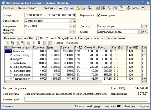 - Автоматизированного формирования документов поступления товаров, работ и услуг на основании договоров по государственным закупкам.