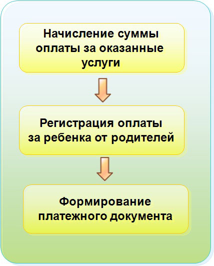 Подсистема учета родительской оплаты позволяет автоматизировать процессы по ежемесячному начислению оплаты услуг, предоставляемых детскими учреждениями.