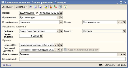 - учет родительской оплаты, поступающей наличным или безналичным способом;