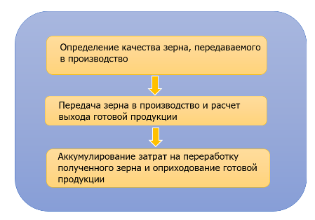 Для отражения производственных процессов по изготовлению продукции из собственного и давальческого зерна реализован набор документов, с помощью которых оформляется передача зерна в производство, оприходование готовой продукции на склад, реализация собственной продукции, отгрузка продукции давальцам с оформлением акта выполненных работ по переработке зерна и т.д.
